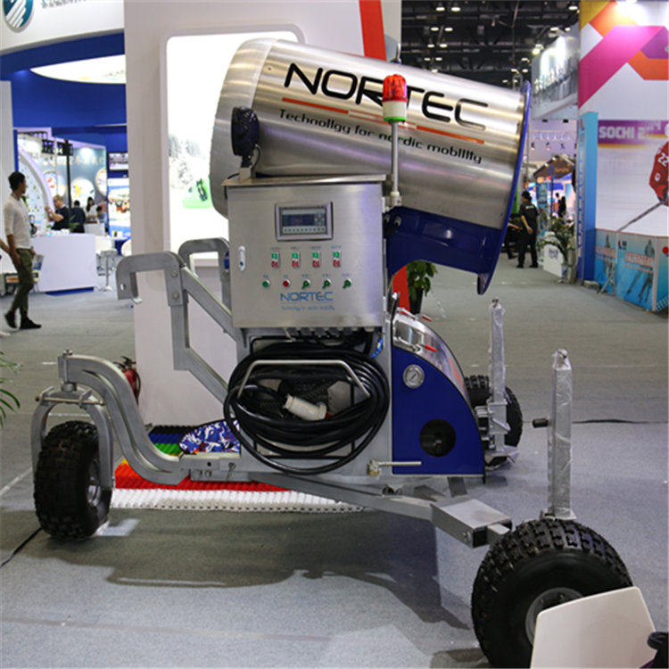 首先,從技術(shù)上說引進(jìn)的是奧地利工藝,加上自己的不斷研發(fā)創(chuàng)新,為打造性能穩(wěn)定,使用壽命長久的機器。整個制雪系統(tǒng)設(shè)計的合理,水氣混合比例好,310個噴嘴均勻分布在風(fēng)筒周圍,大排量造雪,滿足您的需求。